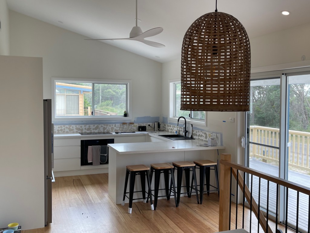 The focus for the next stage was to concentrate on the interior and renovate the kitchen, bathrooms and bedrooms to create a functional space the family can enjoy and escape the busy city live for our beautiful South Coast.