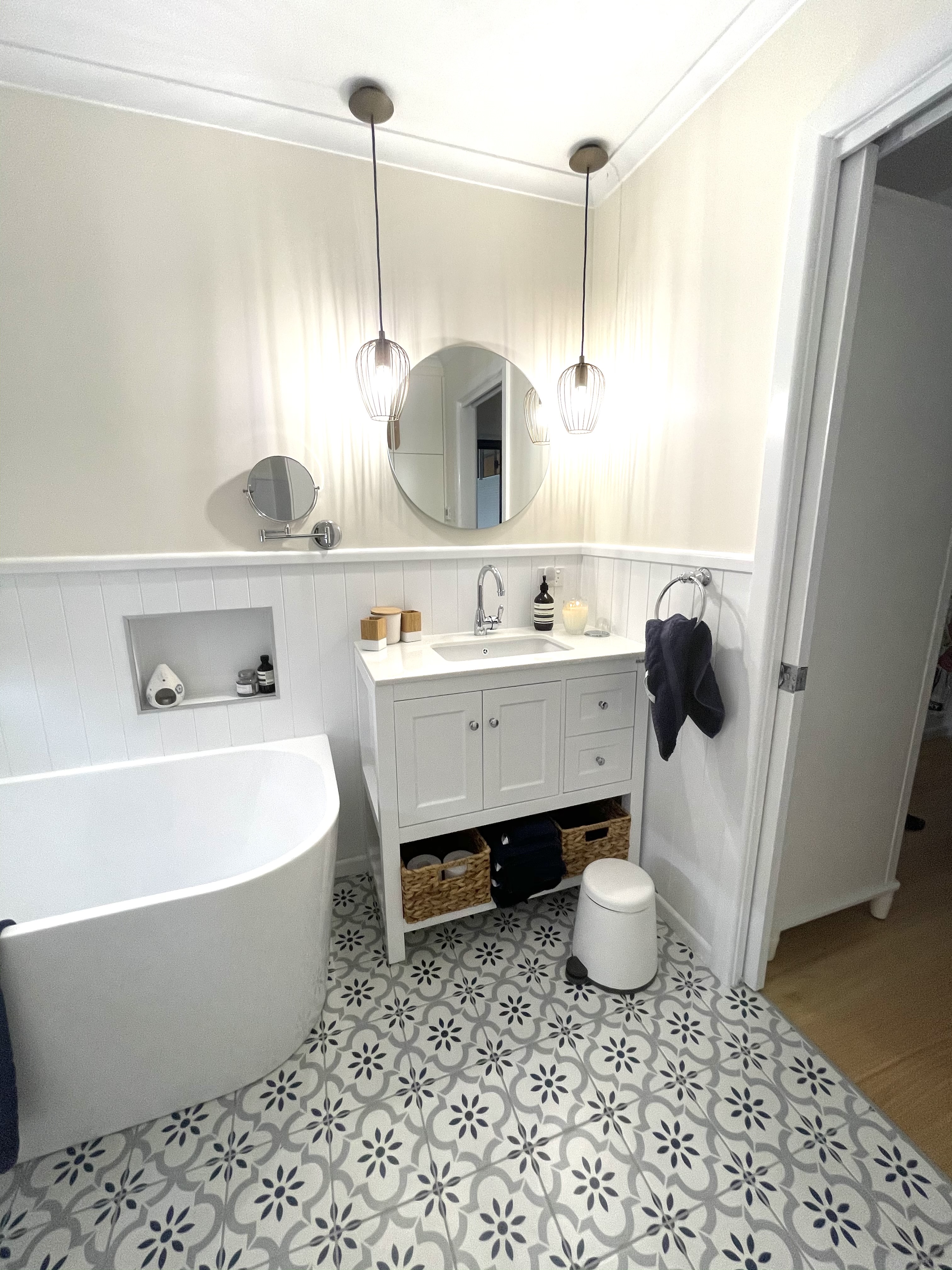 By adding new furniture pieces, artwork, designer light fittings and lovely Hampton style panelling and Turkish floor tiles in the bathrooms, this home has transformed into a delightful ‘home by the sea’