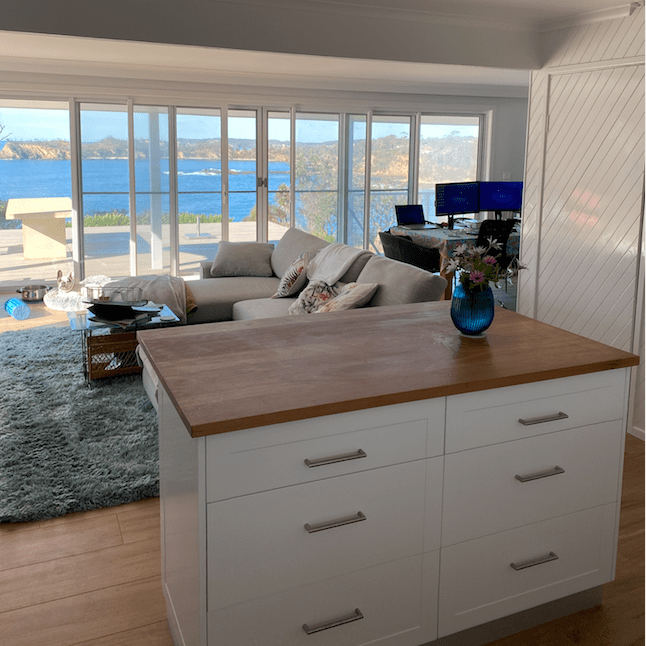 The brief was to design a functional lay-out with a small island bench overlooking the ocean.